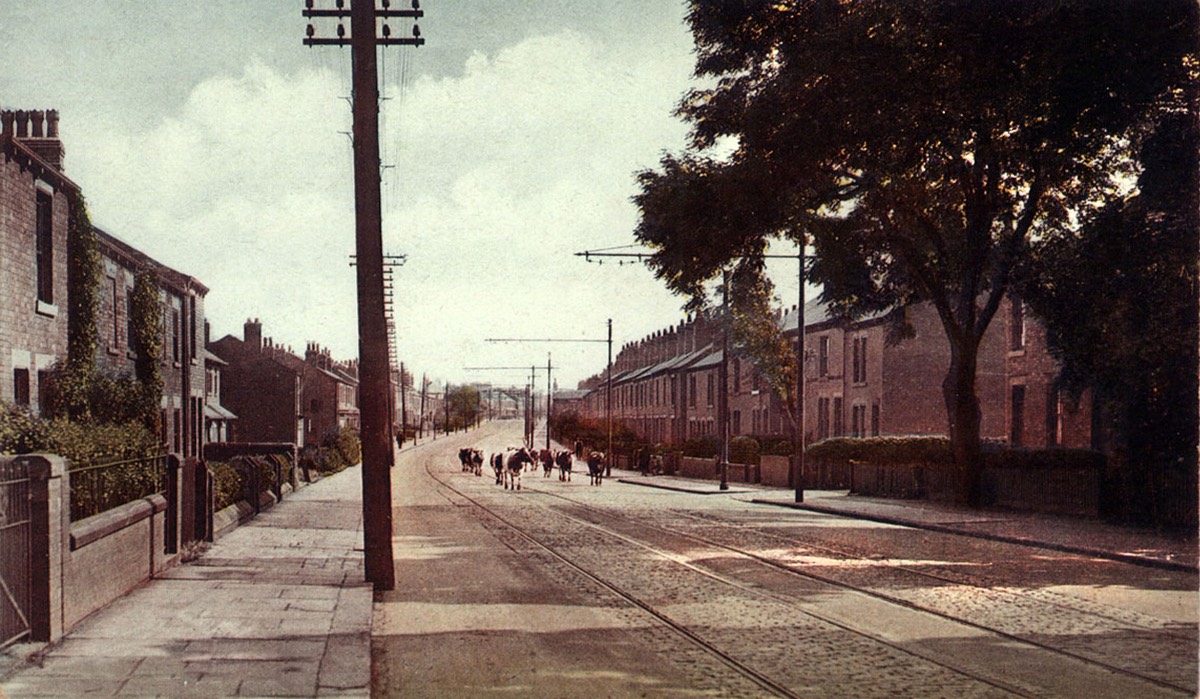 Dairy Farmer Hallas, Cows, Leeds Road, Looking to Newton Hill. O56