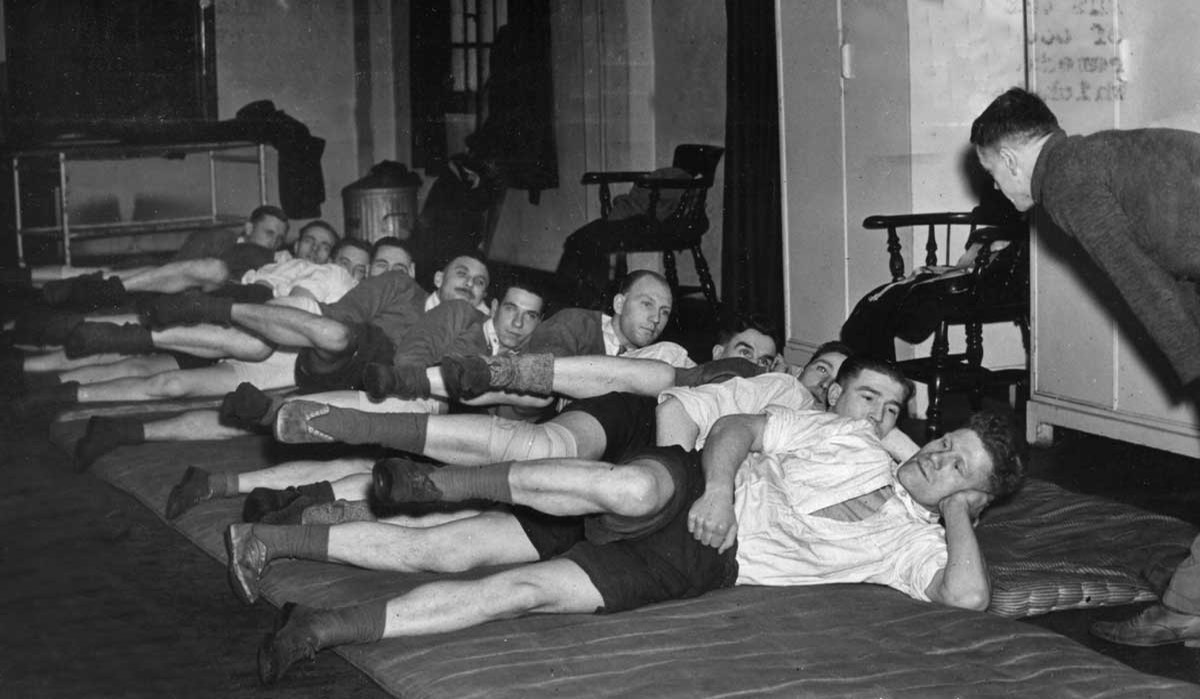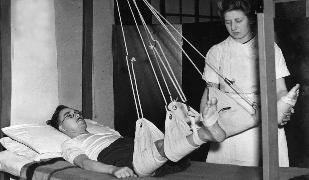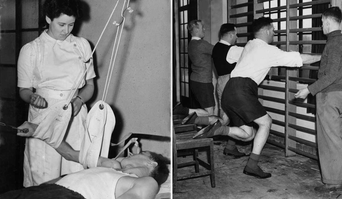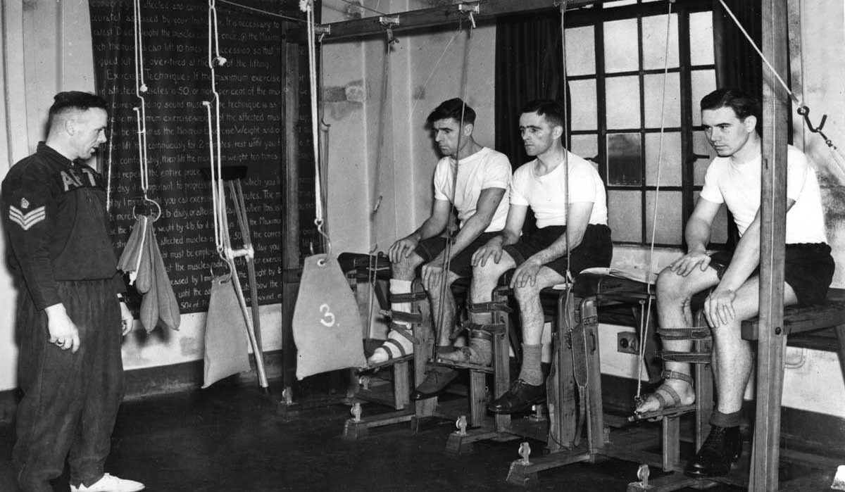 Wounded in Normandy, fractured femurs, help to strengthen backs and arms. PR8