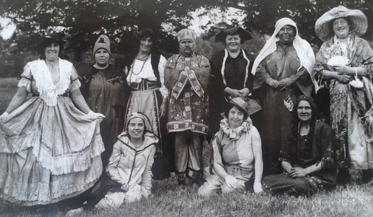Carnival 1920s, left to right, Mr Griffiths, Ruby Stocks, Charlie Dunn (In pram). S77.